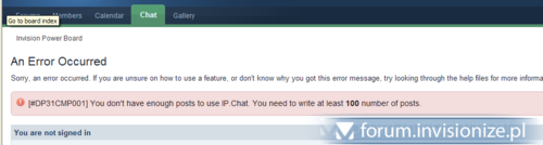 With this hook you can limit access to IP.Chat, bases on users posts count.