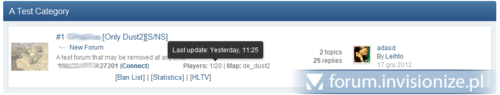 Możliwa jest zmiana ikony forum na obraz mapy na serwerze (pobierane z gametrackera), lecz do tego wymagana jest edycja stylu (co i jak zrobić opisane jest w pliku ReadMe).