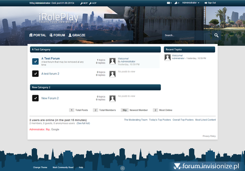 iRolePlay - To nowy skin do IP.Board 3.4.5, który swoją tematyką świetnie pasuje do forum o tematyce Grand Theft Auto. Łączy w sobie prostotę, oraz można go łatwo edytować wizualnie(Plik PSD całego skinu w paczce).