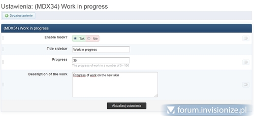 Dodaje pasek postępu wraz z opisem wykonywanych prac w panelu bocznym