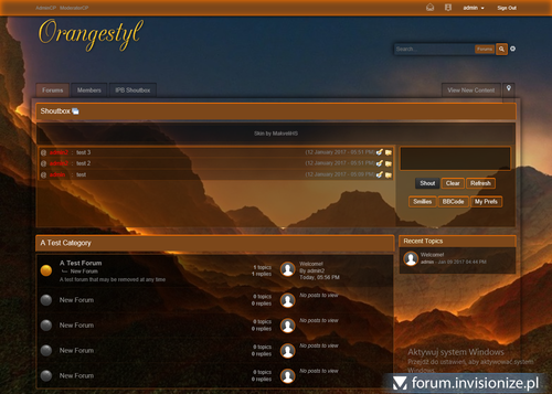 Bardzo ładny, przejrzysty skin o pomarańczowych kolorach. Nadaje się pod każdą tematykę forum.