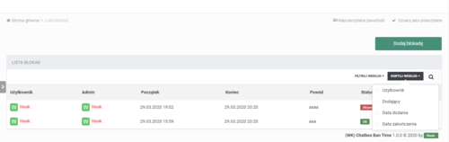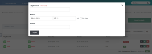 Aplikacja pełni funkcję czasowej blokady do ChatBox'a , po upływie czasu blokada zostaje zdjęta, a status blokady zostanie zmieniony na "wygasły".