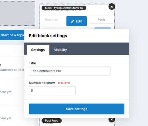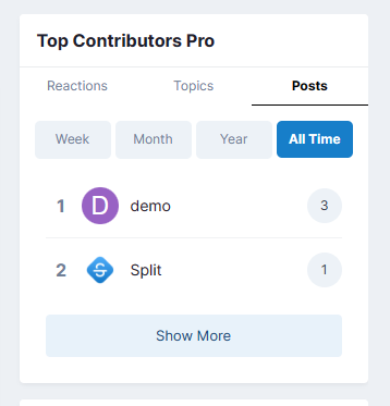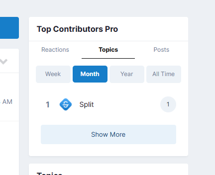 Jako że kupujący zrezygnował z zamówienia, udostępniam wtyczkę na marketplace za niewielką kwotę. Aplikacja dodaje nowy widżet, który działa podobnie do Top Contributors, ale dodatkowo wyświetla tematy i posty z możliwością sortowania.