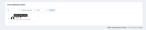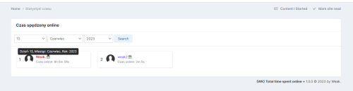 Aplikacja umożliwia monitorowanie i prezentowanie czasu spędzanego przez użytkowników w serwisie. Czas aktywności może być wyświetlany w podziale na różne okresy: