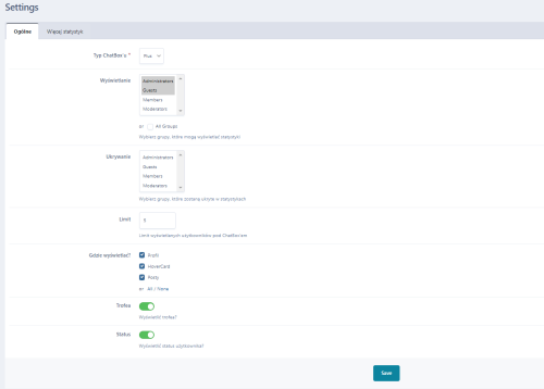 Typ statystyk (opcja z wyborem Chatbox'u):