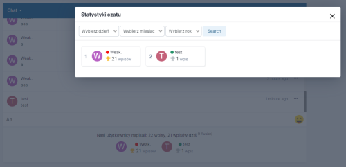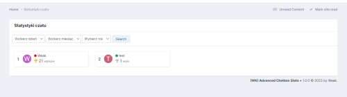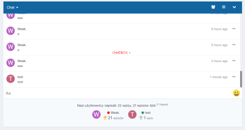 Aplikacja (WK) Advanced Chatbox Stats + zapisuje oraz wyświetla wpisy użytkowników pod ChatBox'em, widget'cie oraz na podstronie. Dzięki tej aplikacji mamy pełną kontrolę nad napisanymi wpisami przez użytkownika, wpisy są zliczane w osobnej tabeli forum oraz podzielone na każdy dzień, tak aby była możliwość wyszukania sobie dowolnego dnia, miesiąca lub roku.