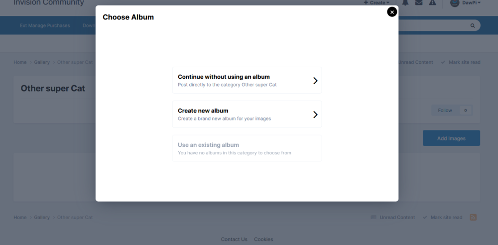 16. Bo dodajesz do kategorii. Wtedy przechodzisz do danego albumu i z jego poziomu dodajesz do niego nowe zdjęcia. Napisałem wyżej. Dodawanie z głównego widoku jest takie jak pokazałeś: No ale jak mówiłem, z widoku drugiej kategorii już można:
