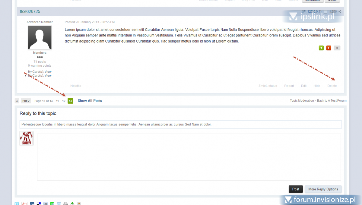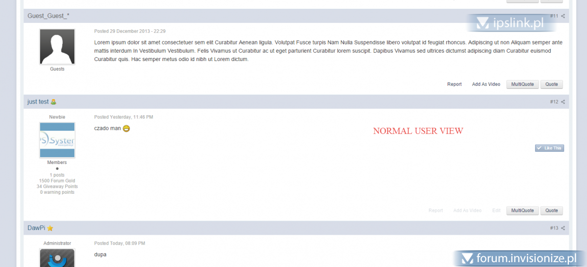 1. Miałem na myśli oczywiście usunięcie tego przycisku tylko z ostatniego postu rzecz jasna. Szukałem modyfikacji, ale jedyna jaka jest dostępna w MP to taka usuwająca ten przycisk, ale z pierwszego postu. Jednak nie byłbym sobą gdybym kiedyś takiego moda nie napisał - jest dostępny do zakupu, więcej informacji na PW. Screeny: