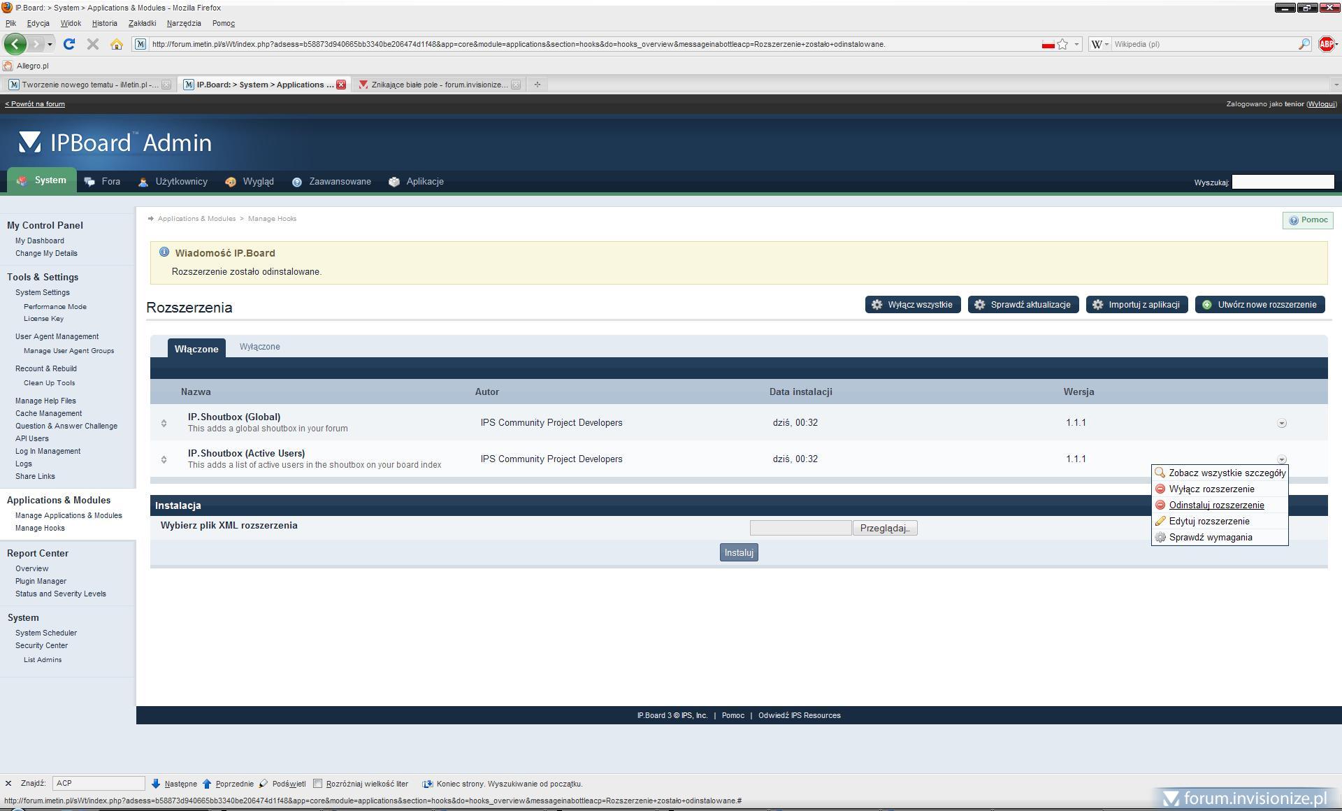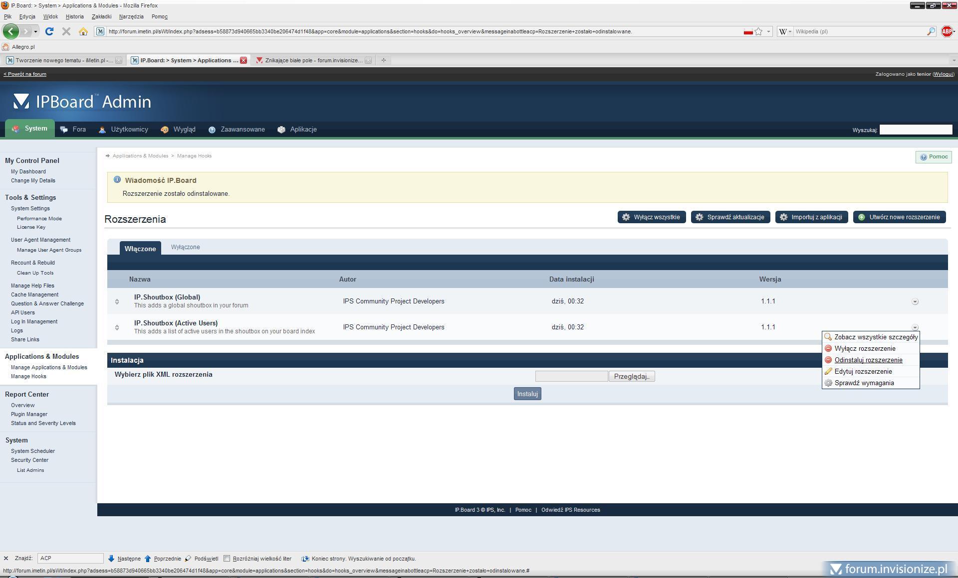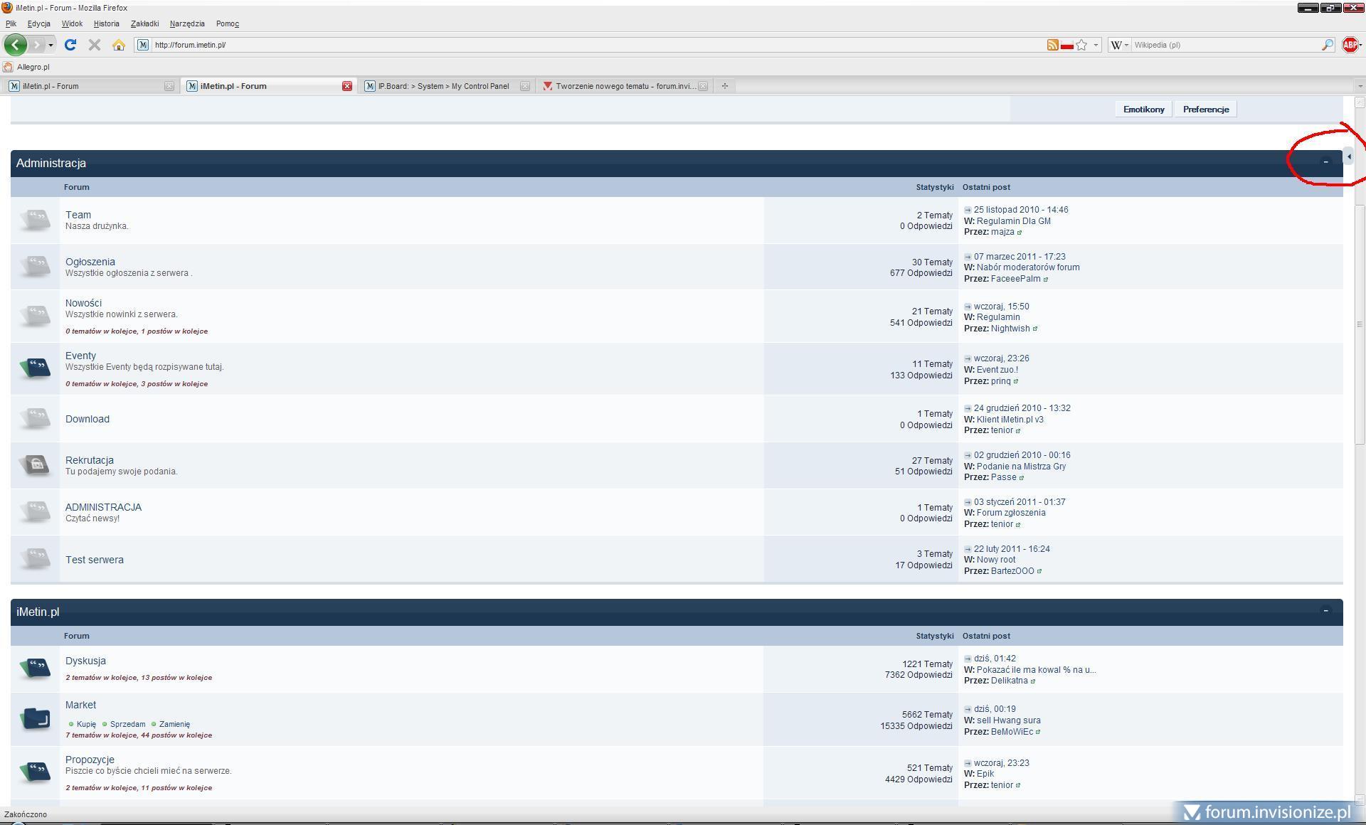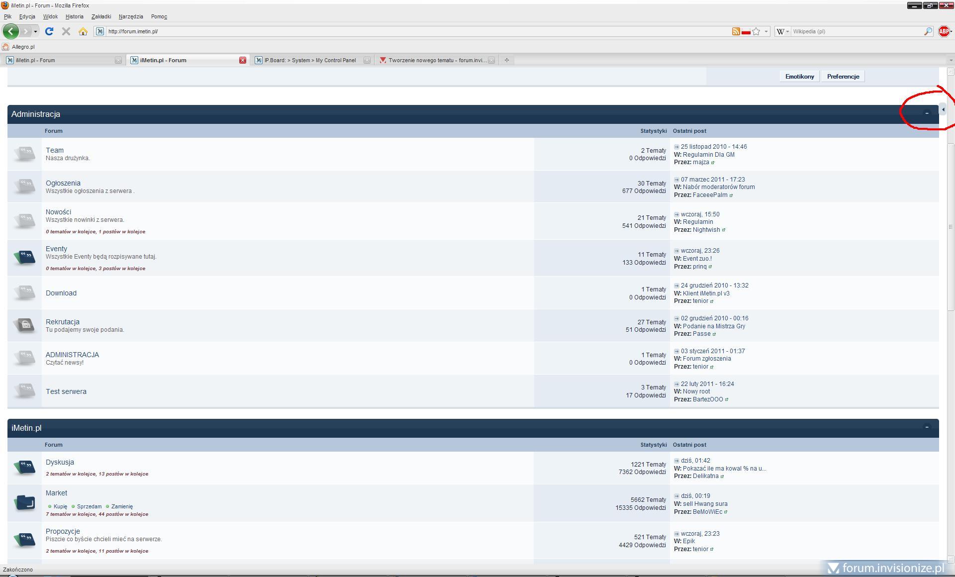 6. Konto testowe: invisionize / invisionize Podmieniłem wszystkie pliki z nowo pobranego ipb345 na swoje forum - jeśli to jest aktualizacją skina.