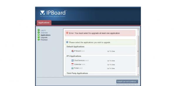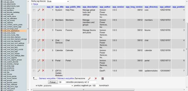 8. Upgrade z 3.0.5 do 3.1.4 Błąd: Please select the applications you wish to upgrade. - nie mogę wybrać aplikacji Zastosowałem się do porady: "W PMA usuń z tabeli o nazwie upgrade_history wszystkie wpisy z wersją do której aktualizowałeś, a potem uruchom ponownie konwerter." Niestety, nie przyniosło to rezultatu. Oczywiście postępowałem krok po kroku z "Aktualizacja IP.Board w serii IP.Board 3.x." z postu Post DawPi Krótko - nie mogę przeprowadzić aktualizacji, nie rozumiem dlaczego. Jakie dane powinienem jeszcze podać, aby rozwiązać mój problem?