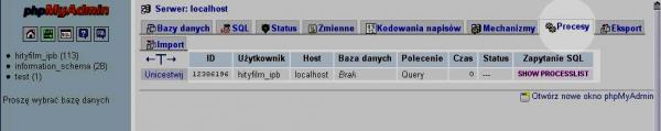 Obserwuj procesy w phpMyAdminie, coś je może mnożyć, jakiś mod(?). Na jednym hostingu miałem nawet po 30 procesów i nie było problemu, na innym za 10 mnie wywalili jak się powtarzało. Nie znam się, ale te całe procesy (tak mi powiedziano) właśnie wyczerpują limit połączeń do bazy w ekspresowym tempie. Przykładowo Hekko.pl ma 1000 połączeń do bazy w godzinę, to zależy od dostawcy, spytaj jaki ma limit połączeń do bazy na godzinę, (pewnie tego nie zmieni jeśli to zwykłe konto). Ile jest u ciebie online (średnio) ?