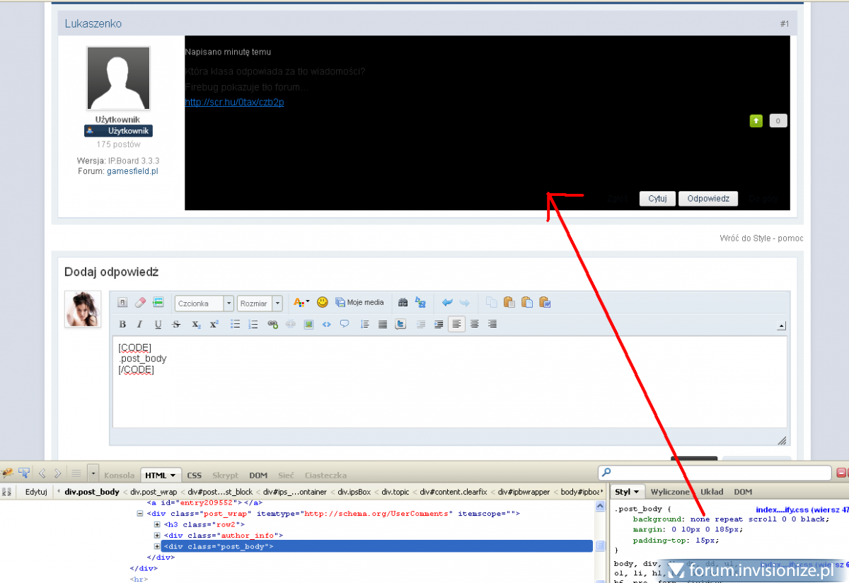 Dziwisz się? spróbuj: background: url({style_images_url}/obrazek.rozszerzenie ) repeat scroll 0 0 #000000; /obrazek.rozszerzenie wrzuć do ftp -> public -> style_images -> katalog obrazków twojego stylu -> TU