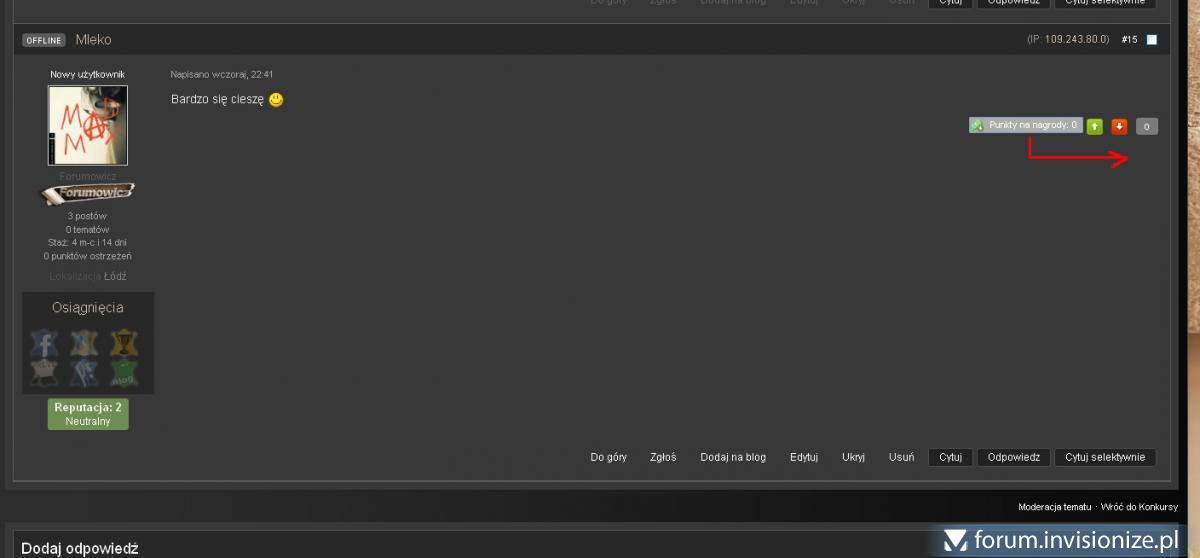 Witam - nawiązując do wątku chciałbym poradzić się, który plik odpowiedzialny jest za edycję wyglądu posta, i gdzie go szukać . Chciałbym, aby w poście ikonka z dodatku ibEconomy była pod ikonkami reputacji. Z góry dziękuję za pomoc. o taki efekt chodzi jak poniżej Pozdrawiam