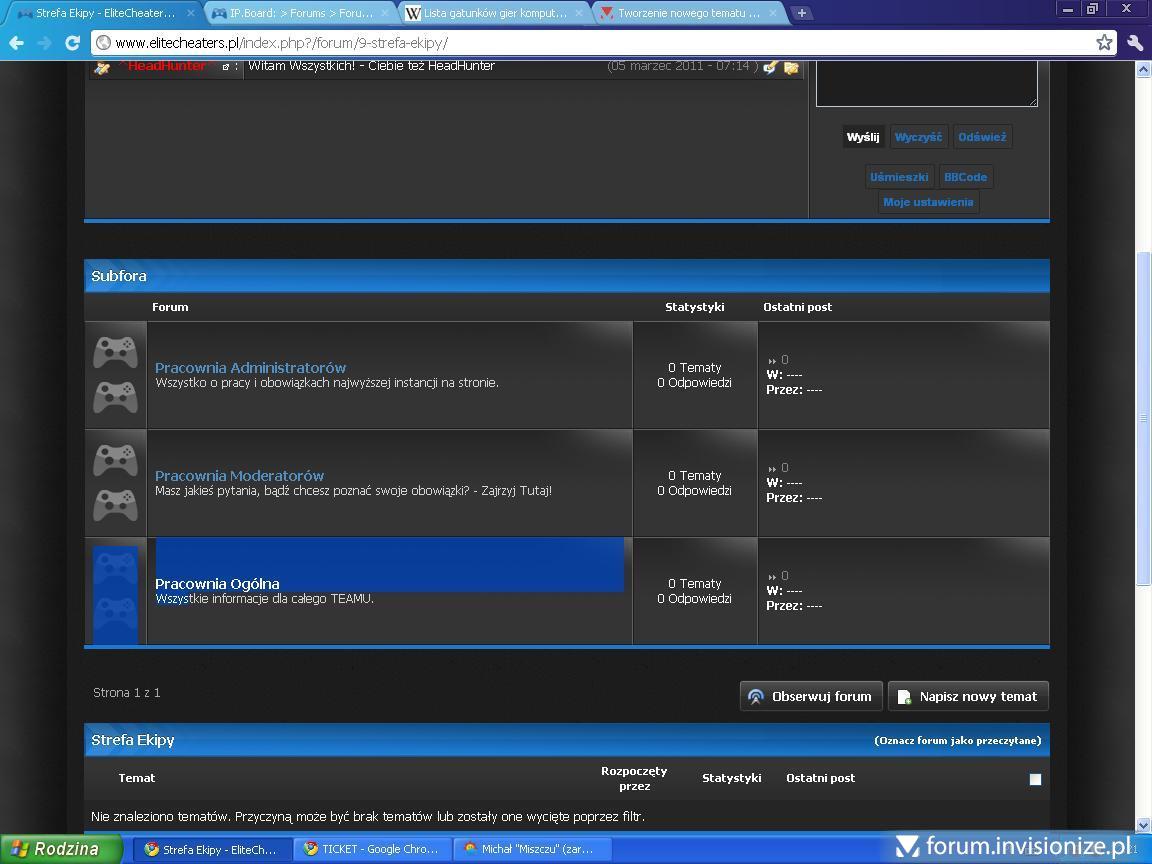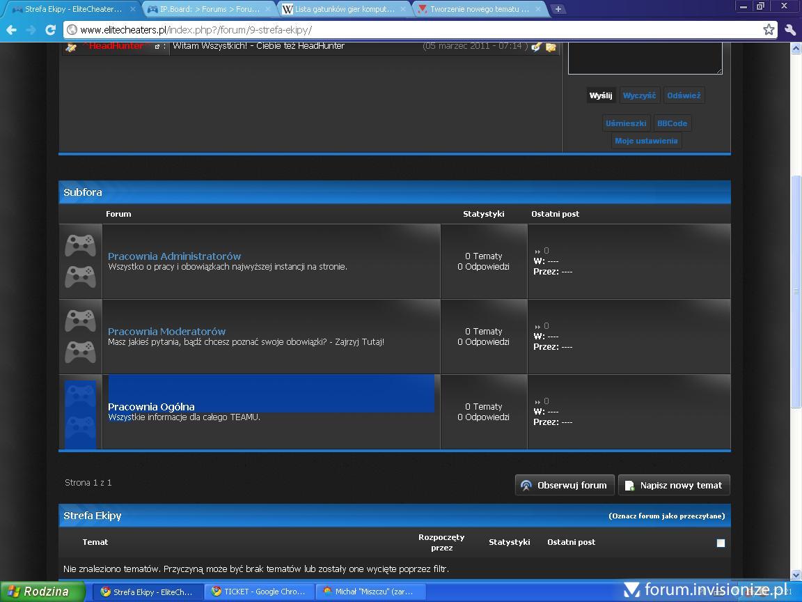 Witam. Wykryłem kolejny błąd skinu GamesBlack umieszczonego na forum... Polega on na tym, że skin subforów jest podwojony - Jak? - zamieszczam grafikę pokazującą ten problem Sądze, że błąd polega na tym, że ikona forum jest podwojona, przez co wydłuża cały skin - jak to naprawić? Który element skinu wstawić na forum, gdyż nie wiem gdzie to może być zawarte - wyświetlanie ikony tego subforum? P.S. Kolega chyba naprawdę nie miał licencji - stronkę już usunął ;P