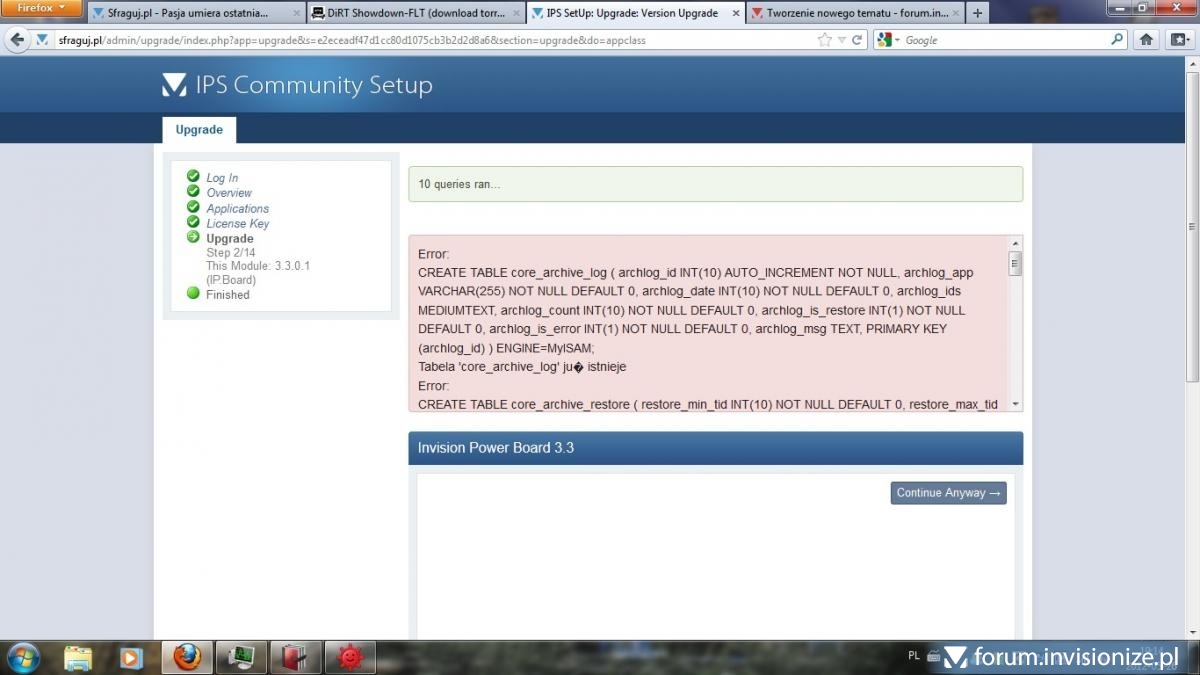 21. Witam mam trzy błędy przy update do 3.3.2 z 3.2.3 Oto one i występowanie ich: Problem w tym że nie wiem czy mogę normalnie kontynuować Update do 3.3.2 wcześniej kończyło się to błędami, typu nie można było otworzyć tematów... Proszę o pomoc Pozdrawiam Przemek