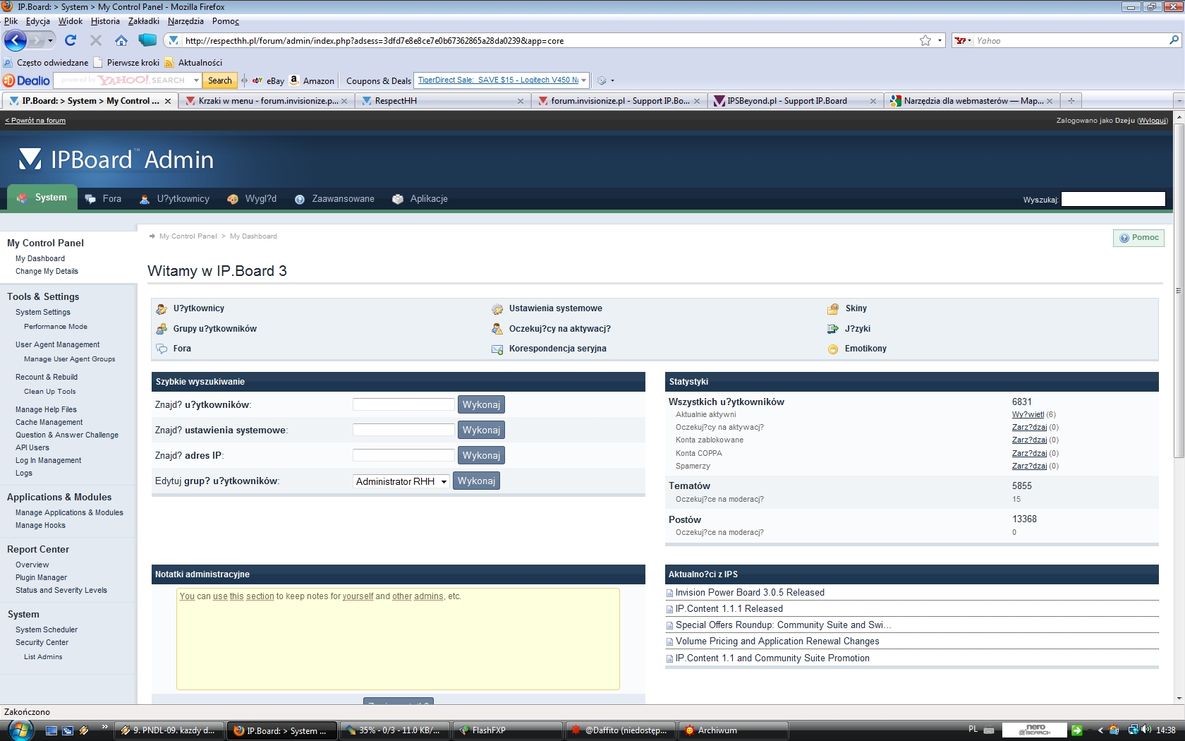 14. hmmm nic tam nie widzę na temat linków ;/ a edytowałem taki pliki ipsRegistry.php adminOutput.php mog one mieć coś wspólnego z tym co się dzieje? (pytam w razie gdybym coś tam źle zrobił)