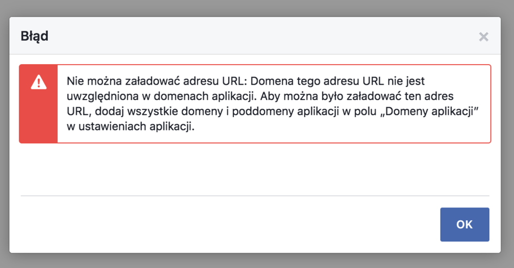 2. Wersja forum 4.2.8 Podczas próby zalogowania się za pomocą facebook-a Wyświetla się informacja