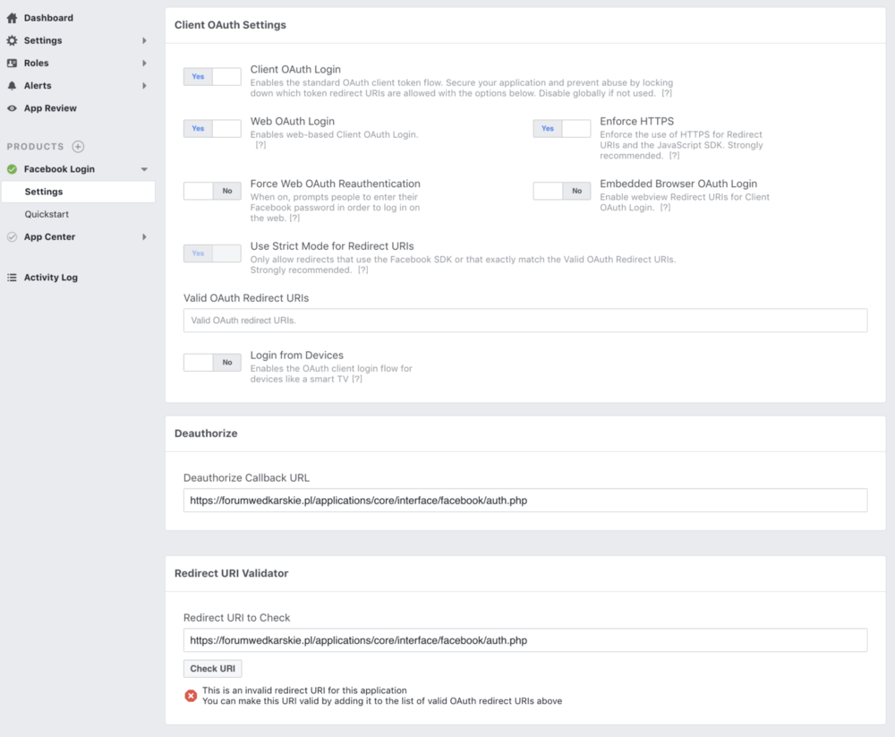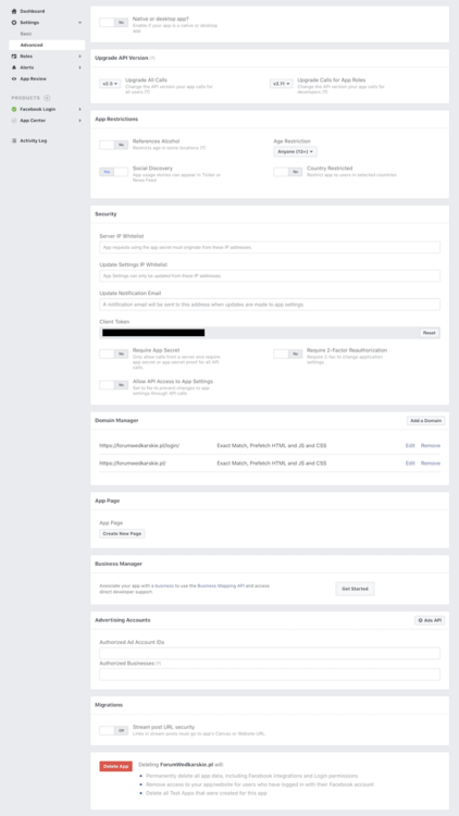 4. Witam, Mam ten sam problem, tylko że logowanie wcześniej działało, po aktualizacji aplikacji facebooka, logowanie na forum przestało działać. Błąd ten sam co u kolegi wyżej. Próbowałem ustawień tak jak w tym temacie https://invisioncommunity.com/forums/topic/442010-facebook-login/?tab=comments#comment-2718604 czyli dodanie Moje ustawienia:
