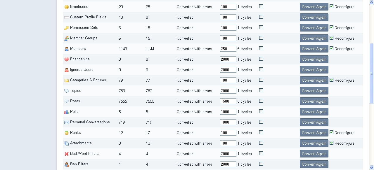 1. Witam wszystkich forumowiczów konwertowałem bazę danych z php by przemo potem na phpbb 3 a na koniec na IPB prawie wszystko dobrze wyszło ale na forum nie wyświetla mi się liczba użytkowników a także posty . jak temu zaradzić ma ktoś pomysł . załączam grafikę z konwersji bazy w bazie danych userzy i posty są . url http://www.webtutorial.pl