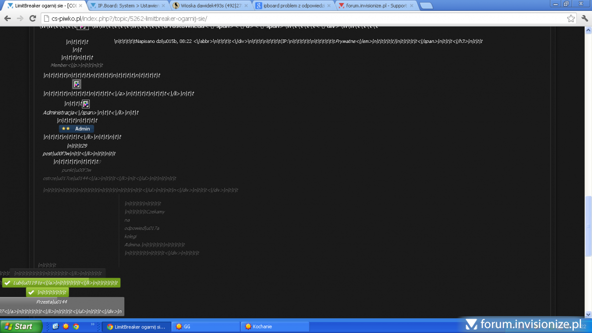 5. Witam oto mam taki problem gdy odpowiadam na jakiekolwiek tematy : Warning: file_exists() [function.file-exists]: open_basedir restriction in effect. File(/home/knyf/domains/cs-piwko.com/public_html/uploads) is not within the allowed path(s): (/home/dawidek492:/tmp:/var/tmp:/usr/local/php5:/usr/local/php53:/usr/local/php54:/var/www/html) in /home/xxx/domains/cs-piwko.pl/public_html/admin/applications/core/sources/classes/attach/class_attach.php on line 1565 Warning: Cannot modify header information - headers already sent by (output started at /home/dawidek492/domains/cs-piwko.pl/public_html/admin/applications/core/sources/classes/attach/class_attach.php:1565) in/home/xxx/domains/cs-piwko.pl/public_html/ips_kernel/classAjax.php on line 323 Warning: Cannot modify header information - headers already sent by (output started at /home/dawidek492/domains/cs-piwko.pl/public_html/admin/applications/core/sources/classes/attach/class_attach.php:1565) in/home/xxx/domains/cs-piwko.pl/public_html/ips_kernel/classAjax.php on line 326 Warning: Cannot modify header information - headers already sent by (output started at /home/dawidek492/domains/cs-piwko.pl/public_html/admin/applications/core/sources/classes/attach/class_attach.php:1565) in/home/xxx/domains/cs-piwko.pl/public_html/ips_kernel/classAjax.php on line 327 Warning: Cannot modify header information - headers already sent by (output started at /home/dawidek492/domains/cs-piwko.pl/public_html/admin/applications/core/sources/classes/attach/class_attach.php:1565) in/home/xxx/domains/cs-piwko.pl/public_html/ips_kernel/classAjax.php on line 328 {"success":"1","post":"\n\n \n\t\t<\/a>\n\t\t\n\t\n\t\t\n\t\t \n\t\t\t\n\t\t\t\t Podpowiecie mi co jest błędem i jak to naprawić. Jak zły dział proszę o przeniesienie.