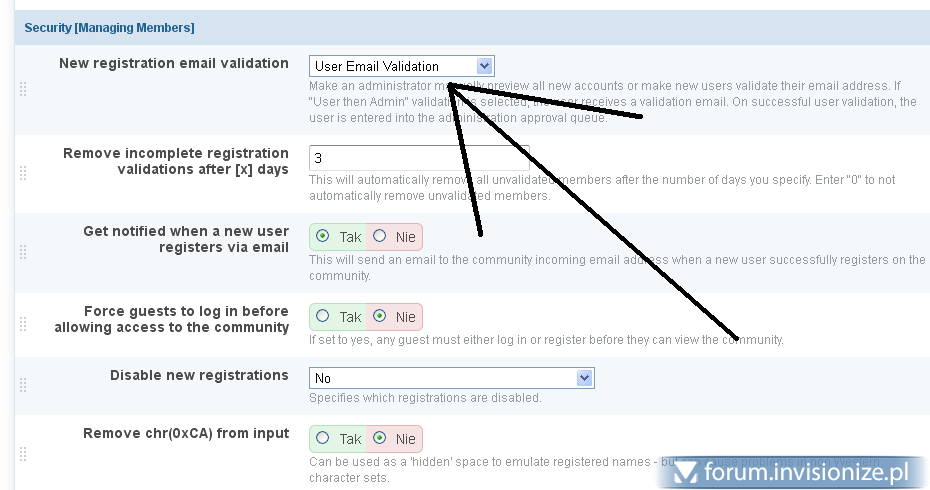 5. Pokaż screeny tych swoich ustawień + screen jak masz skonfigurowanego maila. I jeszcze coś skoro napisałeś że w trybie bezpiecznym poczta PRZYCHODZI, to chyba jest oczywiste że to nie jest problem IP Board tylko Twoich dodatków albo limitów serwera. O to też Cię pytałem, ale nie odpowiedziałeś. Więc: - Screeny ustawień rejestracji Użytkowników - Screen ustawień maila - Informacja: Jakie masz limity wiadomości na hostingu - Screen lub informacja: Jak masz ustawioną domyślnie obserwację tematów przez Użytkowników forum - Screen rozszerzeń POTEM odpowiedź. Zabraknie któregokolwiek z czynników o który pytam, temat rozwiązuję na podstawie tego postu: http://forum.invisio...ta/#entry215028 To jest invisionize a nie portal wróżek. PS- Nie wiem też po cholerę Ci na stronie rejestracji Użytkownika ta TABELA SERWERÓW. Pozdrawiam.