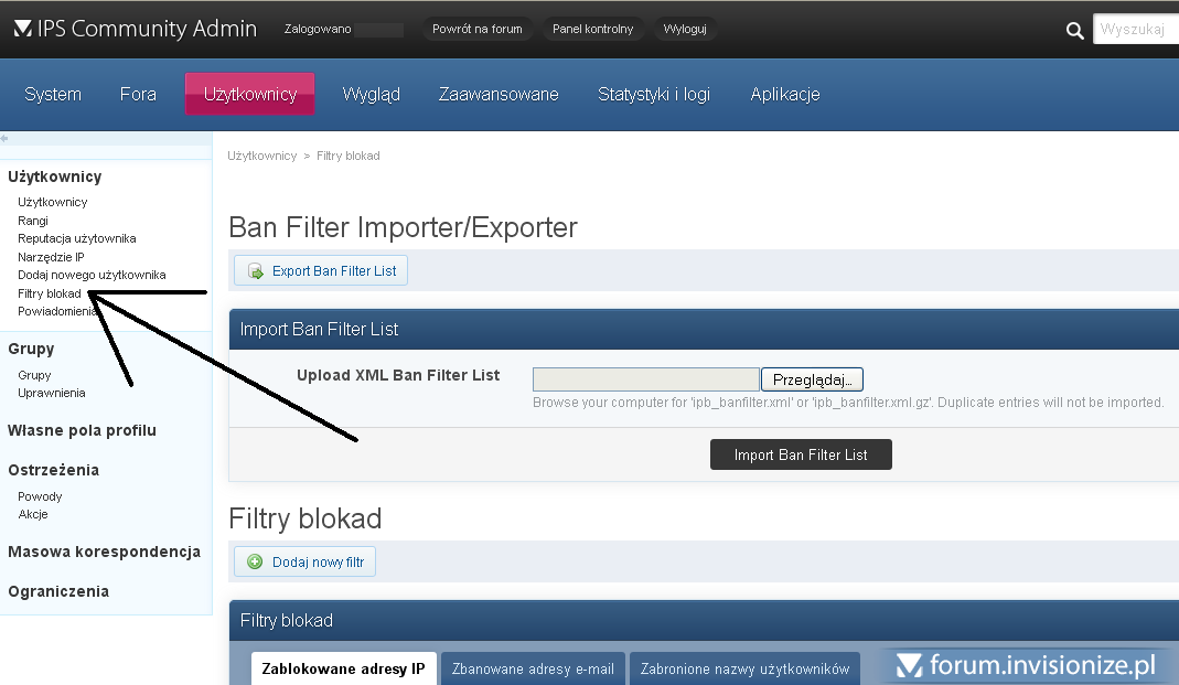 3. ACP-->Użytkownicy -->Filtry Blokad: (Powiększ sobie screen i patrz za strzałką)