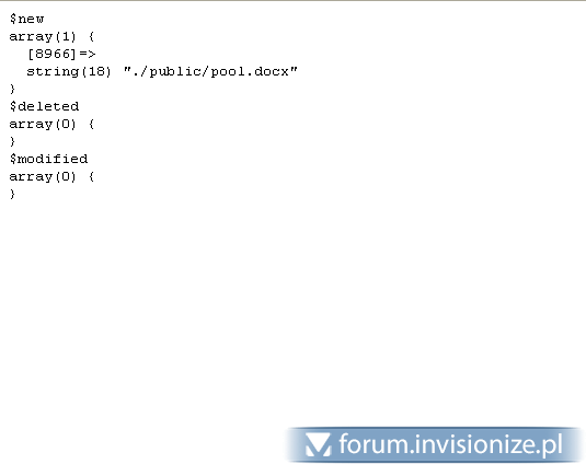 Ponieważ borykałem się ostatnio z atakami na moją witrynę, postanowiłem poszukać w sieci rozwiązań, które umożliwiłyby działanie prewencyjne. Pliki wyleczone, baza danych też. Wszystko zabezpieczone. Zaktualizowana lista banów w pliku .htaccess Ale to przecież nie eliminuje hakerów, którzy w dalszym ciągu, mogą poszukiwać furtki do włamania. Jak wiemy, najczęstszą formą ataku, jest zmodyfikowanie plików na serwerze lub dodanie nowych plików. W pierwszym przypadku, wystarczy nadpisanie całej paczki, wszystkiego. Gorzej jednak jest wtedy, gdy zostaną dodane nowe pliki, co jeszcze bardziej utrudnia nam sprawę, bo wówczas trzeba wszystko usunąć i robić cały upload od nowa. To jest rozwiązanie, ale ciężkie, czasochłonne i wymaga okresowego zamknięcia witryny na czas "remontu". Znalazłem w sieci skrypt, który umożliwia monitoring plików i informuje nas o wszystkich przypadkach gdy: