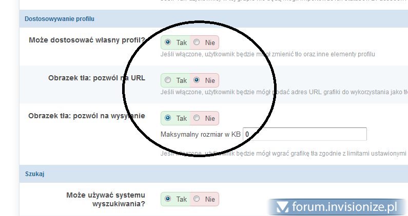 Czy CHMOD folderu uploads, masz prawidłowo ustawiony? I dalej, czy w ustawieniach grup, które mają mieć możliwość personalizacji Profilu, jest tak, jak na załączonym niżej obrazku? Czy na lekko nie przerobionym, czyli na domyślnym stylu IP Board, wszystko działa jak należy? Najpierw wyklucz rzeczy najprostsze i najbardziej oczywiste. Potem dopiero, gmeraj w cssach innych... forów.