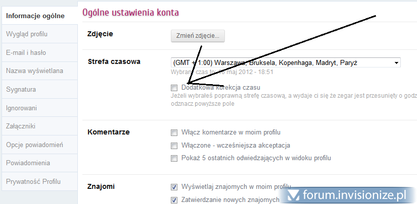 Człowieku. No przecież chyba jaśniej się nie da wytłumaczyć. W opcjach Panelu Użytkownika. Tam gdzie strzałką Ci pokazuję... A zapytanie to się ono "nie nazywa". Je się wykonuje w phpMyAdmin. Poszukaj w sieci, wygoglujesz pod hasłami "masowa zmiana czasu Użytkowników IPB" i tym podobne. Mam jednak wrażenie i wnosząc po Twoim ostatnim poście, że lepiej będzie jeśli z moich porad nie będziesz korzystał i ustaw sobie to domyślnie. Później będziesz pytał jak zrobić zapytanie do SQL, i dlaczego nie działa (bo nie zmienisz prefiksu) i tak się będziemy bawić. Ja już powiedziałem wszystko co się tyczy Twojego problemu. -