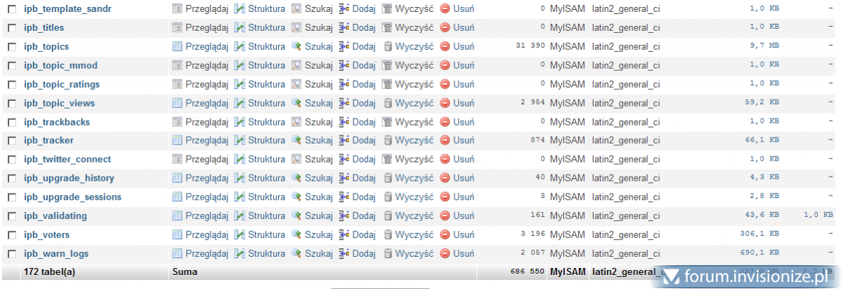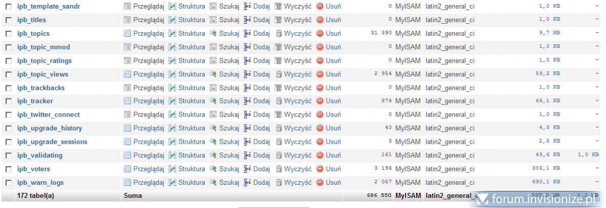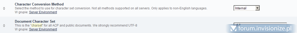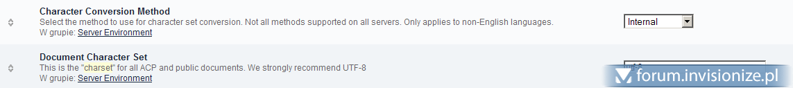 15. Niestety nie mogę edytować postu dlatego piszę kolejnego. Pomogło wrzucenie świeżego cache'u w tabelę ipb_cache_store. Pojawił się jednak problem z kodowaniem... po ustawieniu [sam nie wiem dlaczego] Document character set na utf-8 Język ruszył jak należy... Dziwne bo bazę mam w iso-8859-2 i wszystko na latin_general_ci.
