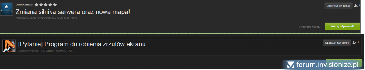 Witam, od 4 dni zajmuje się edycją stylu Deflection, jednak zawsze jak się bawię, coś muszę zepsuć. Dokładnie chodzi o: Powinno być tak jak na obrazku drugim, ale jednak jest tak jak na obrazku pierwszym. Z ipb_styles.css wszystko jest moim zdaniem okej : .ipbfs_titlebox .desc{ padding: 3px 0; } .ipbfs_titlebox{ background: #1d1d1d; border: 1px solid #303030; -webkit-box-shadow: inset rgba(0,0,0,0.4) 0px 1px 6px; -moz-box-shadow: inset rgba(0,0,0,0.4) 0px 1px 6px; box-shadow: inset rgba(0,0,0,0.4) 0px 1px 6px; text-shadow: rgba(0,0,0,0.8) 0px -1px 0px; -moz-border-radius: 3px; -webkit-border-radius: 3px; border-radius: 3px; padding: 10px; overflow: hidden; } Jednak no nie działa tak jak powinno.