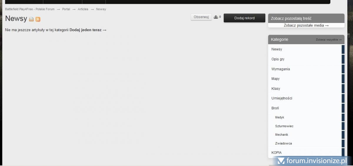 6. Trochę pomieszałem bo chciałem dokładnie opisać, a mogłem to inaczej.. Jak wejdziemy tu: http://battlefield-play4free.pl/page/articles.html/_/newsy/ (to jest Kategoria "Newsy") - mam możliwość dodania Artykułu, a czy można tu dodać jakiś blok ?