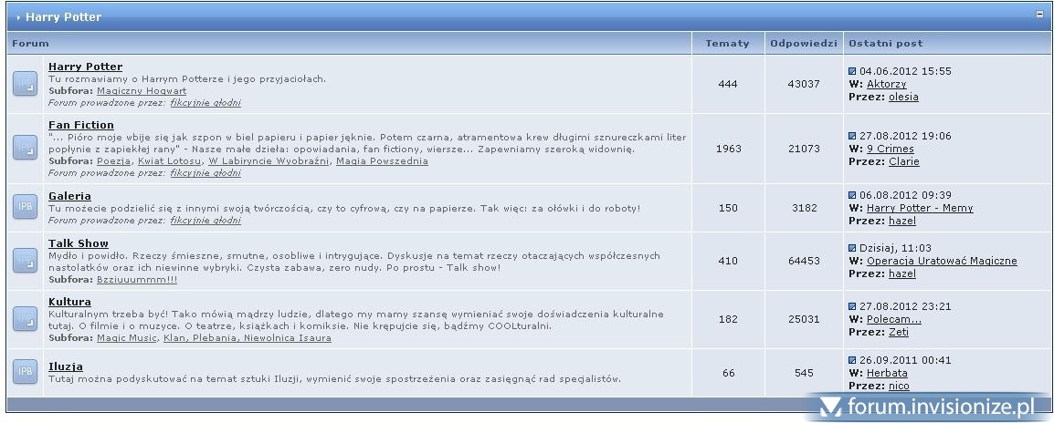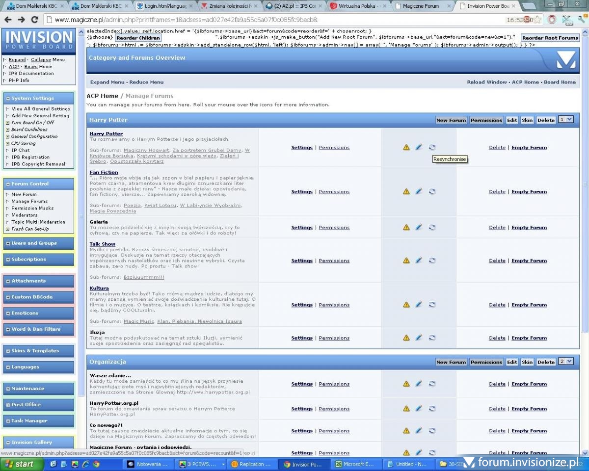 4. Chciałbym zapytać Was o sposób zmiany kolejności wyświetlania forów na IPB 2.0.3. Powiem dokładnie o co chodzi: Jeśli mamy na stronie głównej kategorię np: Forum główne a w niej pod spodem wyświetlają się ( np) 4 nazwy forów należących do tej kategorii, chciałbym zmienić tą kolejność w panelu administratora - ale nie widzę takiej możliwości - może jej w ogóle nie ma? A może po prostu jej nie dostrzegam? Ponadto - czy można przenosić fora pomiędzy kategoriami? - wszystko dotyczy IPB 2.0.3 Dziękuję z góry za jakiekolwiek sugestie.