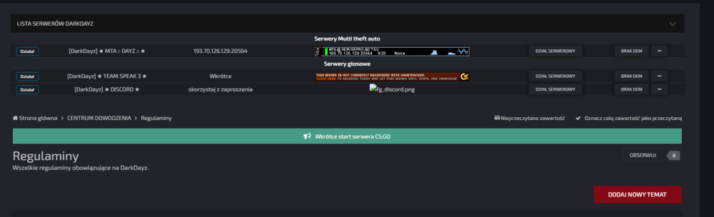 12. Witam zlecę aktualizacje forum do najnowszej wersji wraz z wtyczkami i stylem. Zapłacę minimum 100 zl zależy ile ktoś będzie musiał włożyć w to swojej pracy. Aktualna wersja 4.3.6 Forum: https://darkdayz.pl/