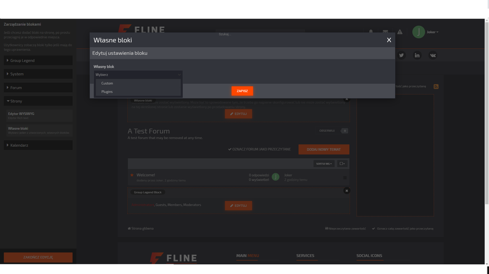 12. dokładnie to 1. Go to Pages -> Blocks -> Create New Block -> Feed from articles https://remoteservices.veilon.net/themes/faq/image/faqab_1.png 2. Details Tab -> Template Key: (Key block. See 2.1 below what keys You available ) 3. Content Tab -> Change the Default template to (The name of the custom template. See 3.1 below for available template names) and Save https://remoteservices.veilon.net/themes/faq/image/faqab_2.png nie da się kliknąć w Custom ani w Plugins