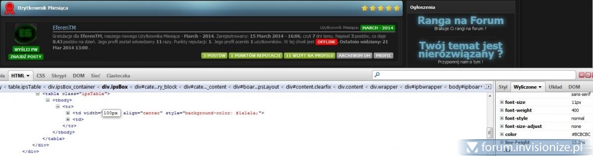 6. No ale u mnie to się dobrze wyświetla: Ale jak chcesz poprawić napis, to masz moim zdaniem dwie opcje: 1. Skrócić go: 2. Albo poszerzyć tabelkę: Użyj swojej kreatywności i do dzieła. Tylko mała dygresja - jak poprawisz ten błąd, stracisz jeden z atutów forum Bo zgodnie z Waszym mottem: He he, taki żarcik