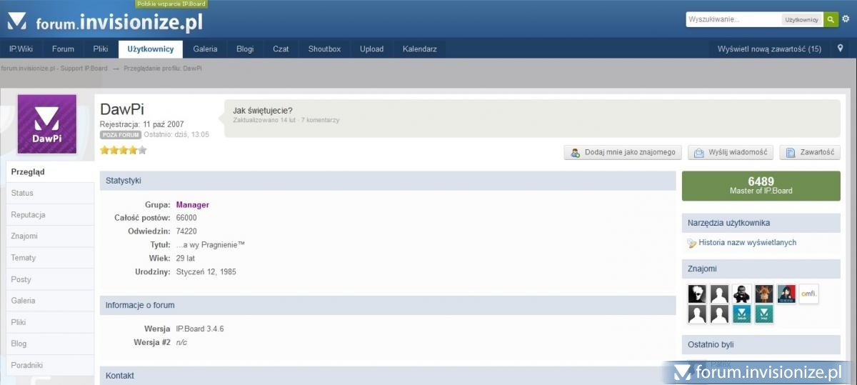 20. IP.Chat: http://forum.invisionize.pl/chat/ (wymagana aktywna licencja), IP.Shoutbox albo takie dodatki: http://community.invisionpower.com/files/file/3554-staff-chat/ coś jak komunikator ze statusów. W IPB wystarczy najechać na nick, żeby się dowiedzieć czy dana osoba jest online czy offline, są do tego także dodatkowe rozszerzenia w markecie
