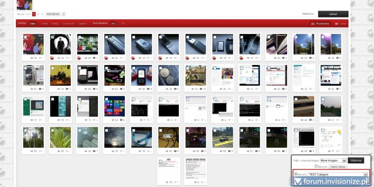 Pal licho, że wystąpiły błędy przy aktualizacji. No zdarza się, jak się wprowadza pokaźne zmiany, to ciężko się zabezpieczyć przed wszystkimi możliwościami. Tylko że te dwa błędy może uzyskać każdy na świeżo zainstalowanej galerii 5.0.2 Ad. 1. Odnośnie pierwszego błędu nie mogli odtworzyć to ich nakierowałem. Utworzyłem kategorię testową (z ustawieniem Albums only), w niej testowy album i do tegoż albumu wysłałem testowy obrazek "Xperia TEST" jak IPS przykazał. Potem poszedłem sobie do innej kategorii, zaznaczyłem dowolne zdjęcie, wybrałem w opcjach przenoszenie => utworzoną właśnie kategorię TEST category i ? Obrazek znikł. Nie mam do niego dostępu, bo widać tylko albumy i zdjęcia w albumach. Gdybym spróbował usunąć całą galerię testową ze wszystkimi zdjęciami, uzyskałbym ponownie taki błąd jak powyżej... Tak to wygląda w praktyce: Podejrzewam iż dzieje się tak dlatego, że galeria usuwa zdjęcia tylko z albumów (zgodnie z ustawieniem), nie dotykając tych zdjęć w kategorii głównej. Bo ich tam w ogóle nie powinno być. Ad.2. Udało im się to odtworzyć i stwierdzili że jest to niezamierzone działanie użytkownika i co prawda wysłali raport do developerów, aczkolwiek są przekonani że to nie jest błąd Tu macie ten raport: http://community.inv...witching-r39664 Ale skoro wykonując tylko dozwolone czynności doprowadzam do sytuacji, że wywala błędy na ćwierć ekranu i psuje galerię, to chyba jest to błąd? No a poza tym dali mi link gdzie możemy zgłaszać sugestie dotyczące galerii: http://community.inv.../299-ipgallery/ Myślę, że wprowadzenie: 1. Dodatkowego ustawienia kategorii Albums & Images oraz 2. Możliwość zarządzania zdjęciami konkretnego autora byłyby bardzo przydatne. Jak myślicie? -