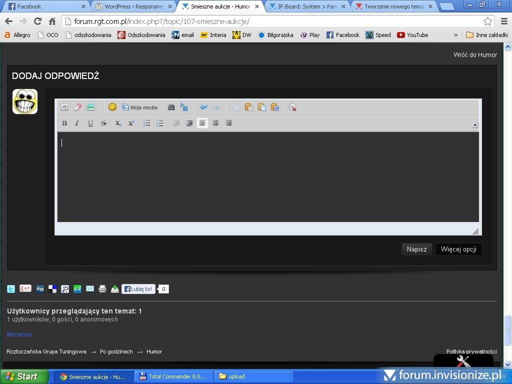 -- -- Zrzut danych tabeli `php_posts` -- INSERT INTO `php_posts` (`pid`, `append_edit`, `edit_time`, `author_id`, `author_name`, `use_sig`, `use_emo`, `ip_address`, `post_date`, `post`, `queued`, `topic_id`, `new_topic`, `edit_name`, `post_key`, `post_htmlstate`, `post_edit_reason`, `post_bwoptions`, `pdelete_time`, `post_field_int`, `post_field_t1`, `post_field_t2`) VALUES (1, 0, 0, 4, '', 1, 1, '212.182.91.165', 1321023512, 'Aktualny regulamin forum RoztoczaĹskiej Grupy Tuningowej, do przestrzegania ktĂłrego zobowiÄzani sÄ wszyscy uĹźytkownicy:<br />\n<br />\n1. Moderatorzy sÄ zobowiÄzani do dbania o przestrzeganie regulaminu przez uĹźytkownikĂłw.<br />\n2. Moderatorzy majÄ prawo dowolnie usuwaÄ/edytowaÄ posty, jeĹźeli ich treĹÄ nie jest zgodna z regulaminem/netykietÄ/zasadami dobrego zachowania/ogĂłlnie przyjÄtÄ etykÄ itp. bez podania przyczyny.<br />\n3. Zabrania siÄ zamieszczania treĹci pornograficznych.<br />\n4. Zabr[...]