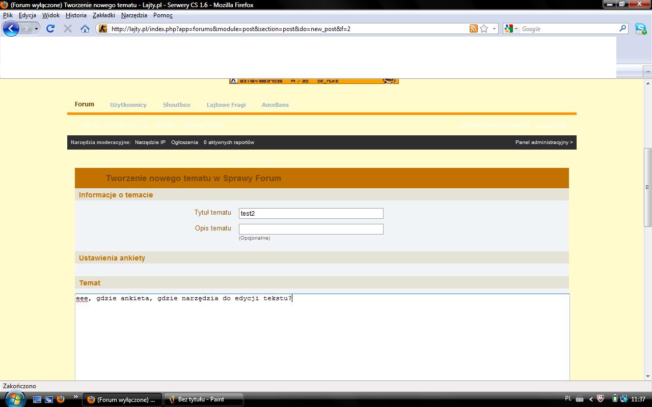 Witam ponownie, na dołączonych screenawidać wszystko, zastanawiałem się tylko w czym tkwi problem w plikach forum, czy w bazie, czy w czym ? Pozdrawiam, BWBW