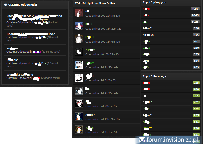 Tabele informujące 10 top posterów i ci co mają najwięcej reputacji.