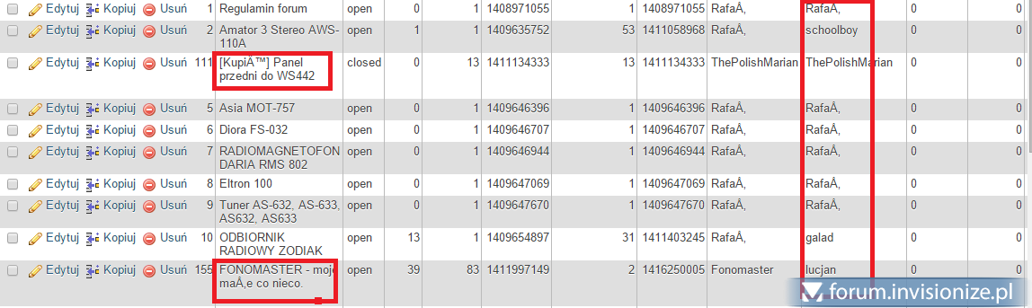 podaj adres forum. Co do krzaków to najprawdopodobniej źle zaimportowałeś bazę danych.