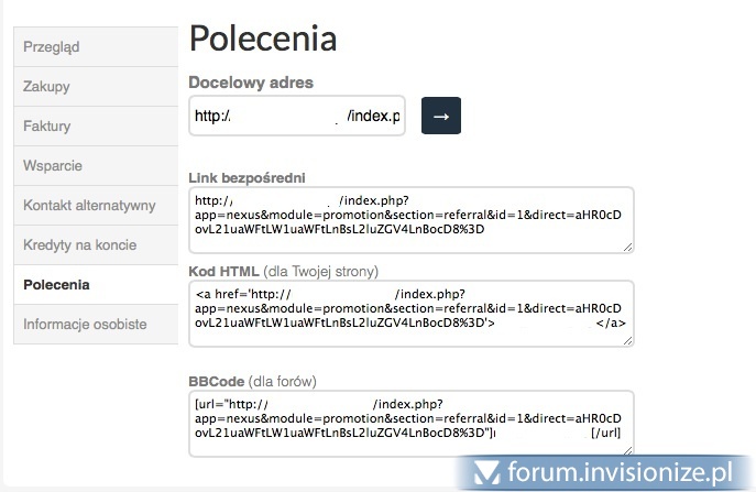 21. Jak działa system poleceń w IP.Nexus? W panelu klienta są umieszczone linki poleceń (dla dla strony, dla forów itd) Na jakiej zasadzie to działa? Ktoś klika w link umieszczony na zewnętrznej stronie i co dalej? Jak to skonfigurować, gdzie szukać statystyk kliknięć. Może ktoś mnie oświecić? Fenkju.