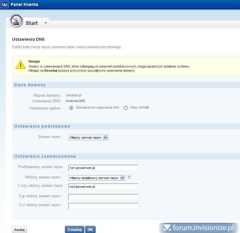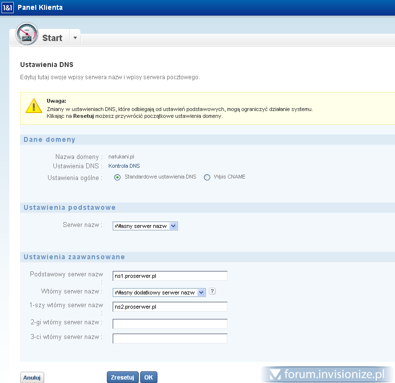 2. A więc na 1and1 mam ustawione Przekierowanie i DNS dołączam Screeny A na proserwerach to zrobiłem tak jak było w filmiku instruktażowym.