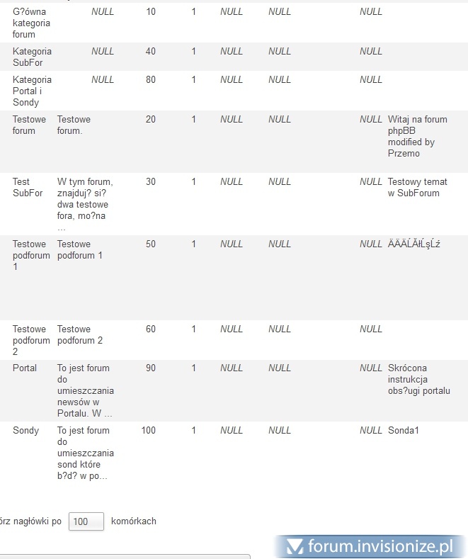 Pisząc o prawidłowym wyświetlaniu PL znaków miałem na myśli samo forum, nie bazę. W jaki sposób mogę to naprawić? -