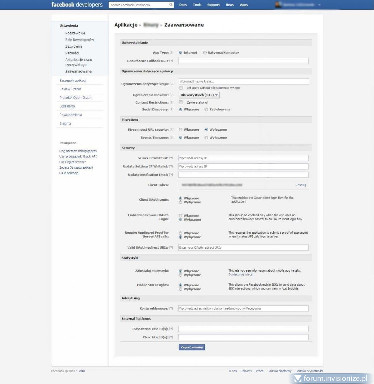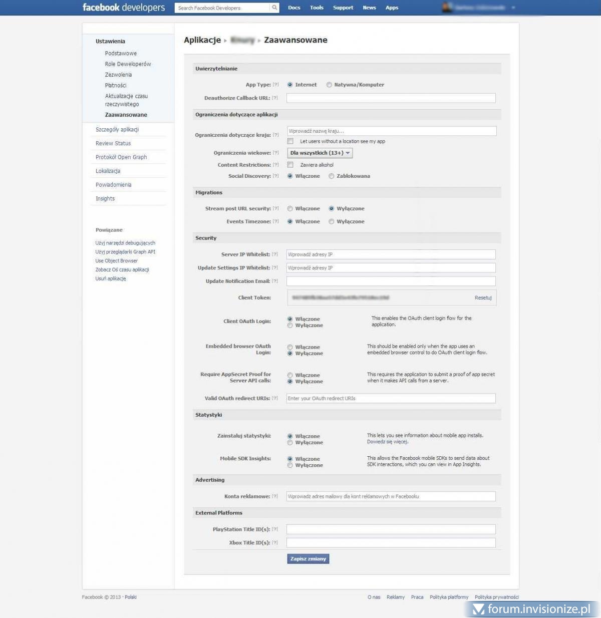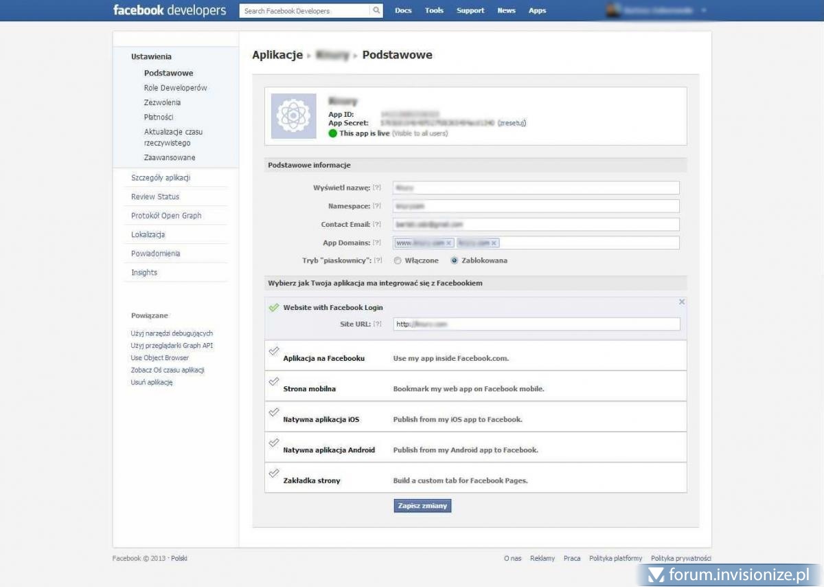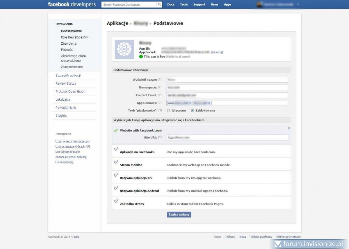 6. Wszystko uzupełnione poprawnie Namespace - domenapl Nazwa apki Appdomains - domena.pl www.domena.pl Website with Facebook Login - http://domena.pl