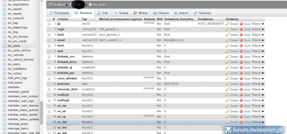No właśnie nw za bardzo gdzie może być błąd, chce aby przy rejestracji na forum pobierało od razu email z members do lss_users (email) tak jak wygląda struktura lss_users