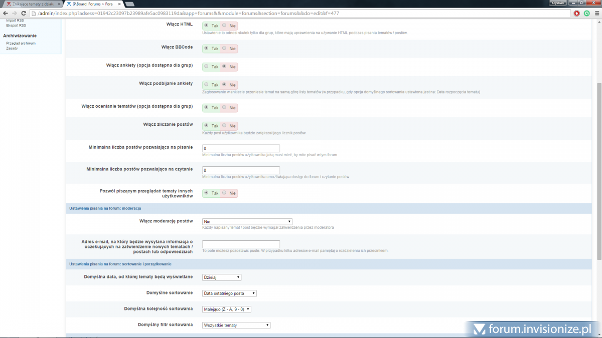 Witam, Mam dziwną sytuację, w jednym z działów forum znikają mi tematy. Wygląda to mnie więcej w taki sposób: 1. Tworzę jakiś temat w tym dziale 2. Przez 24 godziny jest on tam widoczny 3. Po 24 godzinach znika z listy tematów a zamiast tego jest tekst: Nie znaleziono tematów. Powodem tego może być brak tematów w tym forum lub tematy są starsze niż ustawione kryteria wyszukiwania z podanego okresu czasu. ale widnieje np w kolumnie "Ostatnie tematy", "Ostatnie posty", jest zliczany w tabeli obok forum. Usuwałem dział, resynchronizowałem dział, sprawdzałem ustawienia działu, tworzyłem go od nowa. Nic nie pomaga, zawsze po 24 godzinach dzieje się tak jak opisałem wyżej... Będę wdzięczny za pomoc, nie wiem co zrobić, nic nie działa z tego co ja znam.
