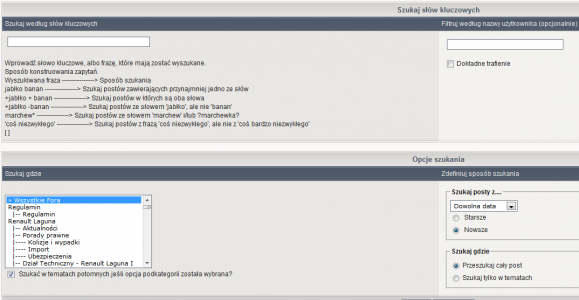 15. Jako że użytkownicy są dość leniwi zcasem i nie chce im sie czytac całej instrukcji obsługi forum wymyśliłem żeby w widoku wyszukiwania zaawansowanego dodać pod frazą: Wprowadź słowo kluczowe, albo frazę, które mają zostać wyszukane [ ] Mały poradnik o treści: Wyszukiwana fraza --------------- Sposób szukania jabłko banan --------------- Szukaj postów zawierających przynajmniej jedno ze słów +jabłko + banan --------------- Szukaj postów w których są oba słowa +jabłko -banan --------------- Szukaj postów ze słowem 'jabłko', ale nie 'banan' marchew* --------------- Szukaj postów ze słowem 'marchew' i/lub ?marchewka? 'coś niezwykłego' --------------- Szukaj postów z frazą 'coś niezwykłego', ale nie z 'coś bardzo niezwykłego' Jednak nie wiem w jaki sposob to zrobic. Dodane do pliku jezykowego spowodowało wyswietlenie się tego w jednym ciągu a nie o to mi przecież chodzi.