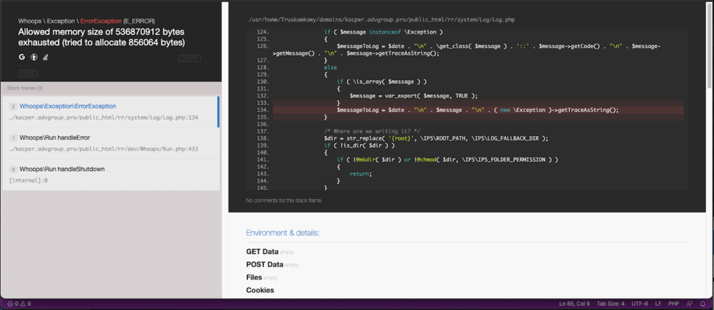 Zrobiłem jak zaleciłeś, na jednej instalacji mam error 503, na drugiej 500 dodałem też post na invisioncommunity: https://invisioncommunity.com/forums/topic/458455-output-function-in-widgets-error-allowed-memory-size/ -